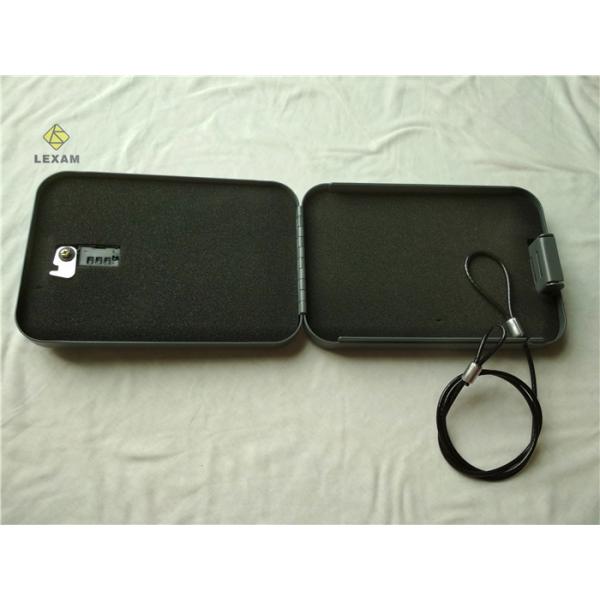 Grey Powder Coated Portable Handgun Safe Steel Cable 3 Tumbler Combination Lock Images |